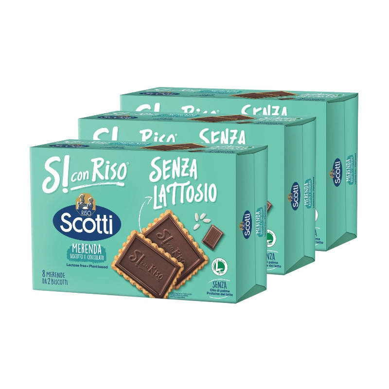 Merendina ricoperta al cioccolato, senza lattosio e proteine del latte certificati L free. Con farina di riso e olio di riso. Senza grassi idrogenati, coloranti e conservanti.